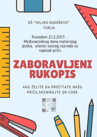 Поводом Mеђународног дана матерњег језика 21.2.2017. године ученици осмог разреда реаализовали су активност настави причу. Они су писали причу „Заборављени рукопис“ тако што је један ученик започео писање приче, а остали су је дописивали водећи рачуна о ономе што је претходно написано. Ученице Наталија Илић и Милена Спасић направиле су плакта и прекуцале причу.