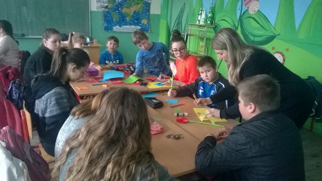 Učenici 7. i 8. razreda su zajedno sa predškolcima i svojim drugarima od 1. do 4. razreda pripremali poklone za mame. Organizovano je četiri radionica na kojima su učenici pokazali kreativnost i timski rad. Radionice su organizovanu kao rezultat saradnje vaspitača Snežane Bojović, učiteljica Sofie Milenković, Jasne Vunturišević , Ljiljane Pavlović i nastavnice srpskog jezika Ivane Pavlović.