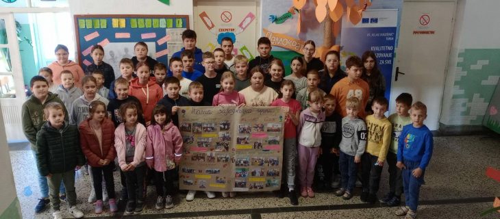 Радионица „Наша заједничка прича“, коју су реализовали наставници Марина Лазић, Весна Велимировић и Небојша Илић, објединила је све разреде у један тим. Циљ је био једноставан и дубок: да ученици кроз фотографије, поруке и цртеже, направе заједнички постер успомена.