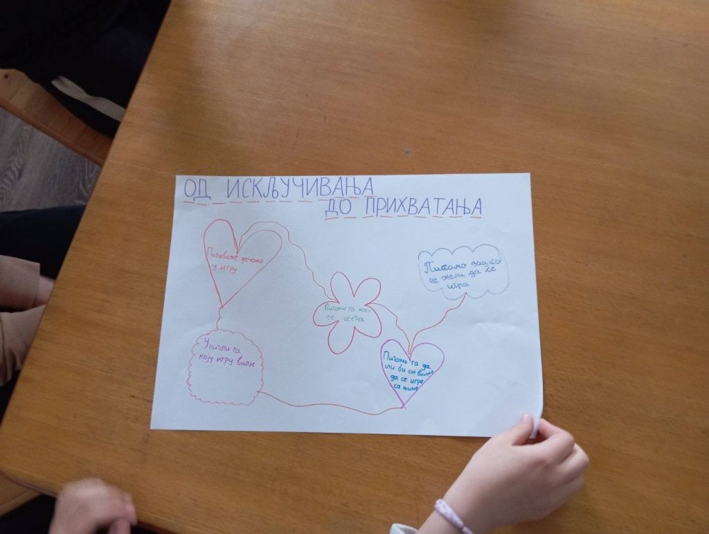 Ученици су дискутовали о вршњачком искључивању, емоционалном и физичком насиљу, и учествовали у активностима које развијају емпатију и критичко мишљење. Завршна активност – размена карата пријатељства – била је гест поверења, блискости и охрабрења.